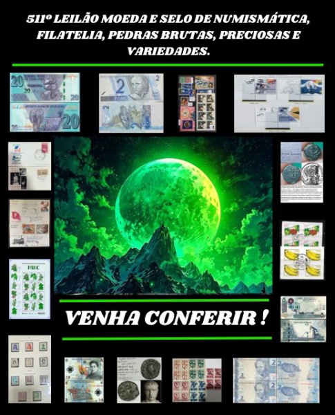 Leilão 59490 511º LEILÃO MOEDA E SELO DE NUMISMÁTICA, FILATELIA, PEDRAS BRUTAS, PRECIOSAS E VARIEDADES.
